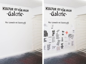 Die Beteiligung starten wir mit einer leeren Galerie, die zur Vernissage mit Bedarfen gefüllt wird. Eine partizipative Galerie auf über 500 m², die vier Tage lang dazu einlädt, Impulse und Themen für den Bewerbungsprozess zu liefern. Installationen, Gesprächsrunden, Walking-Acts und viel weiße Fläche passend zum Motto.
